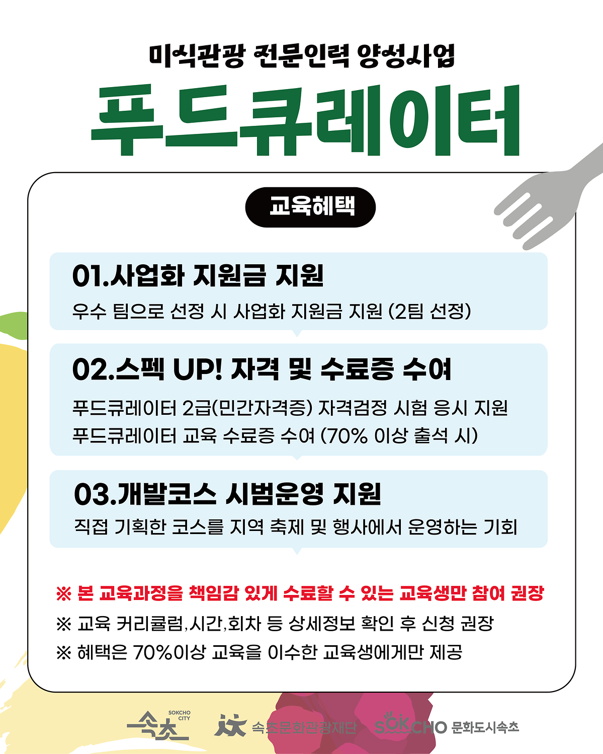 [속초시] 2025 미식관광 전문인력 양성사업 - 푸드큐레이터 교육생 모집
