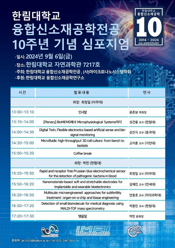 이번 심포지엄은 융합신소재공학전공이 주관하고 (사)마이크로나노시스템학회가 공동 주최하였으며, 한림대학교 융합신소재공학연구소가 후원하여 진행되었다.