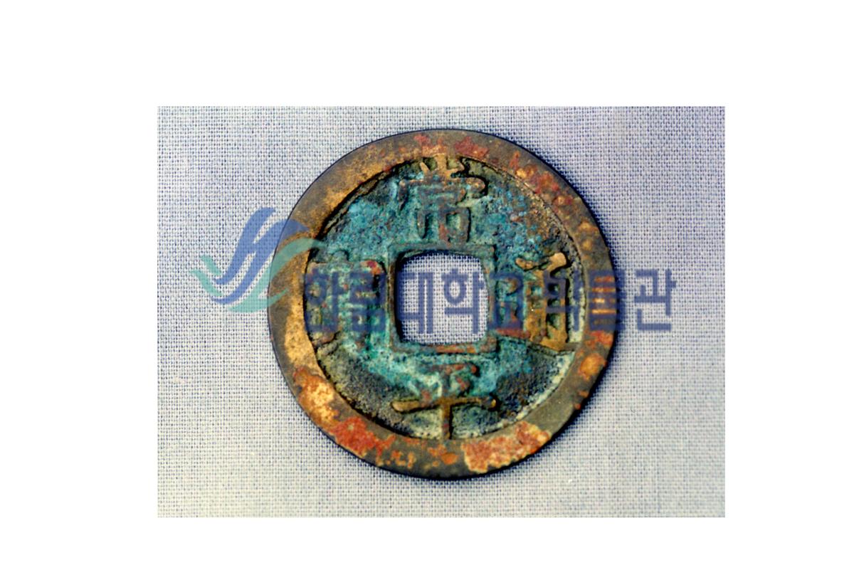 강화 조선궁전지에서 출토된 상평통보이다.모양은 기본적으로 외형이 납작하고 둥근 가운데 네모난 구멍이 있으며앞면에는 상평통보(常平通寶)’라고 글자가 쓰여져 있다상평(常平)은 상시평준(常時平準)’의 준말인데 유통가치에 항상 등가(等價)를 유지하려는 의도와 노력을 그대로 반영한 표시였다.