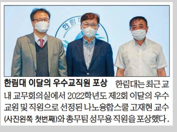 2022학년도 제 2회 이달의 우수교원 나노융합스쿨 고재현교수 포상