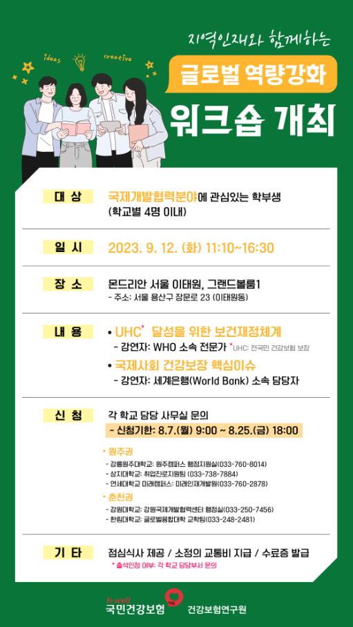 건강보험공단 글로벌 역량강화 워크숍 참석자 모집 안내(~8/22)