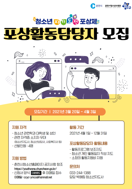 [춘천시청소년수련관] 청소년자기도전포상제 포상활동담당자 모집